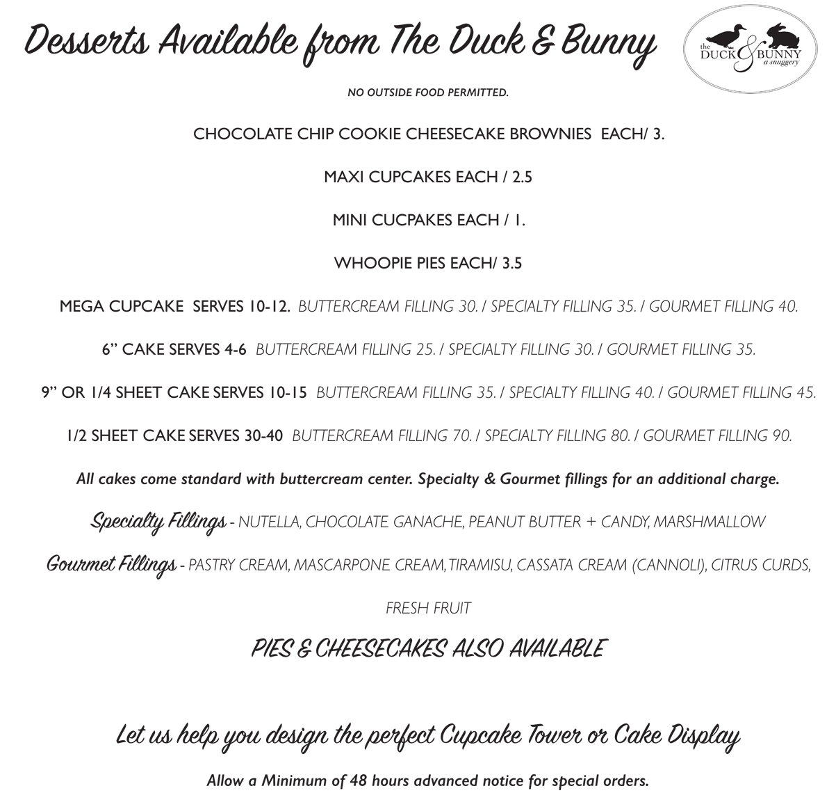 *Order must be placed at least 48 hours in advance. No outside food permitted.